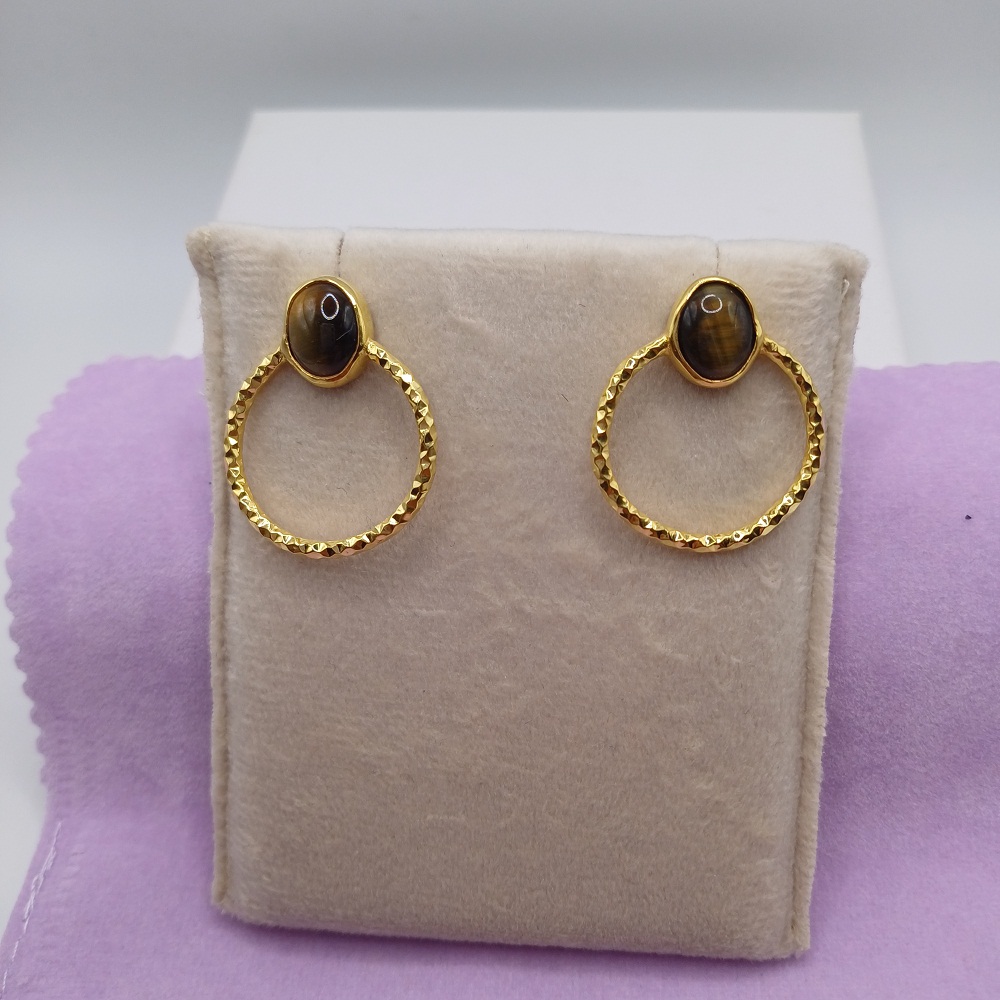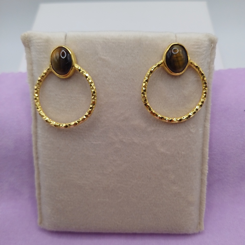 Χειροποίητα ασημένια επίχρυσα σκουλαρίκια με ημιπολύτιμους λίθους Μάτι της Τίγρης.