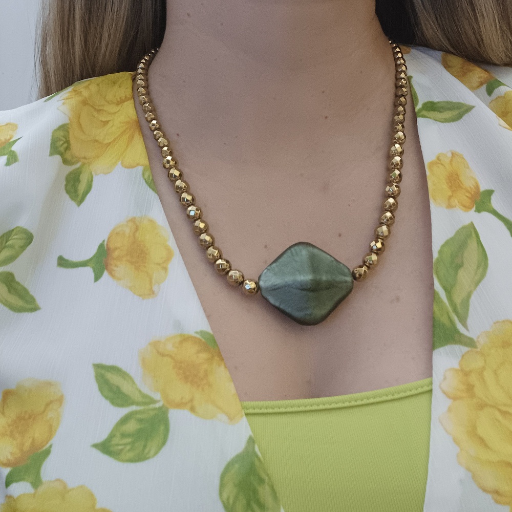 Χειροποίητο κολιέ με αυθεντική πέτρα Murano, χειροποίητη και ημιπολύτιμους λίθους Αιματίτη.