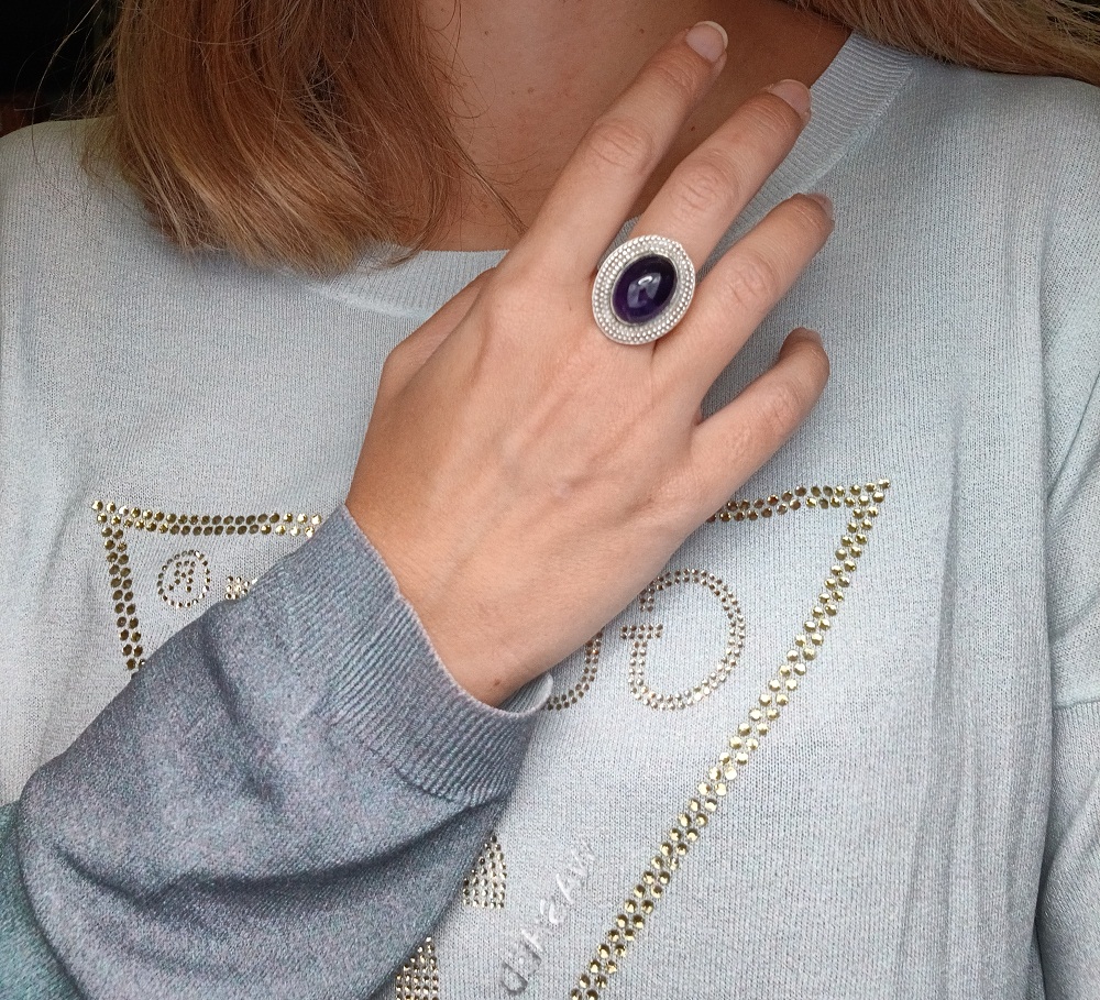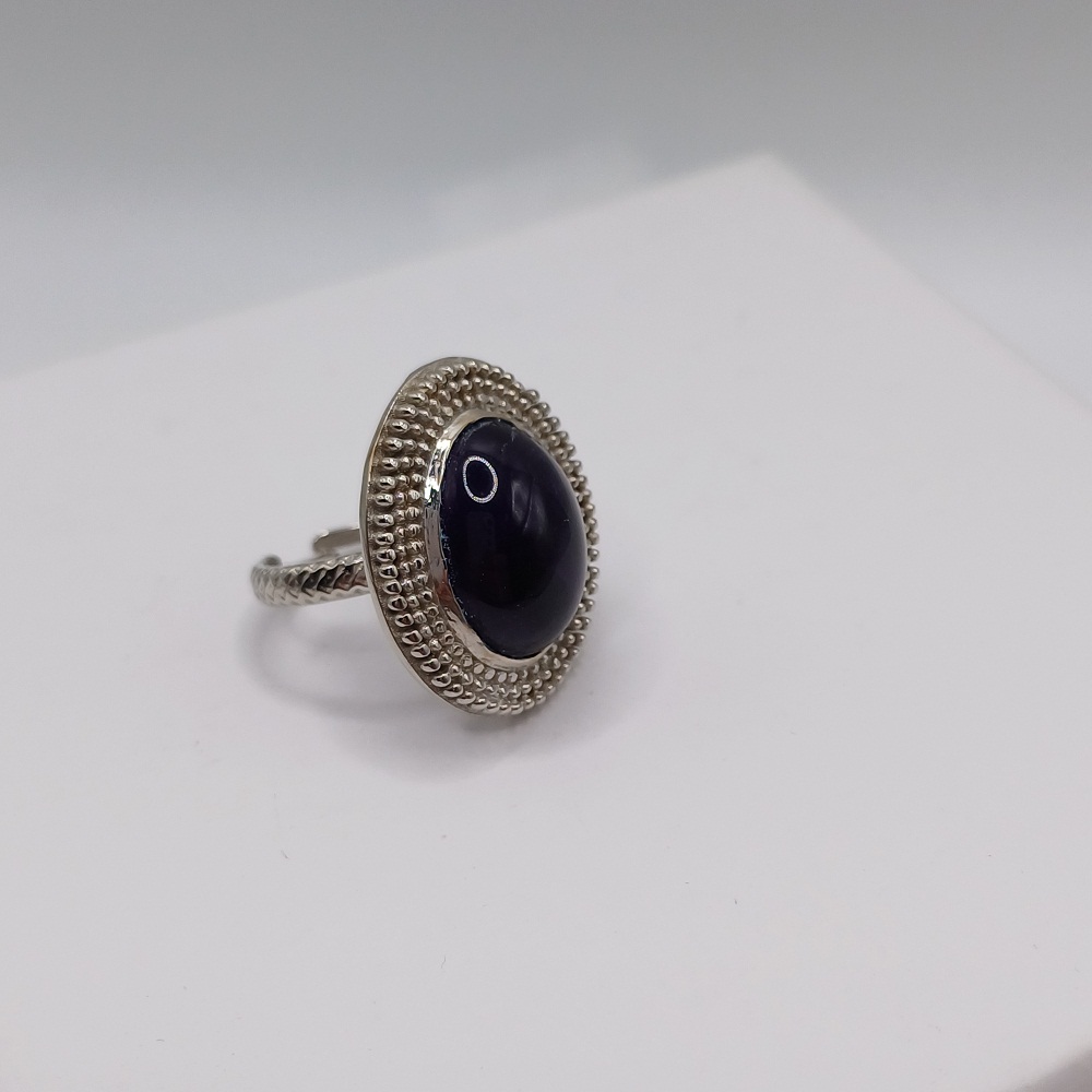 Χειροποίητο δαχτυλίδι από ορείχαλκο με ασημένια επιμετάλλωση και ημιπολύτιμη πέτρα Αμέθυστου.