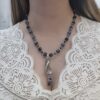 Χειροποίητο κολιέ με ημιπολύτιμους λίθους Γάββρου και Αιματίτη , διακοσμημένο με πέτρα Murano σε σχήμα φύλλου.