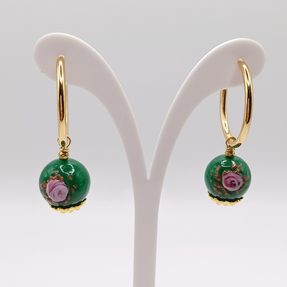 Ατσάλινα σκουλαρίκια με Murano πέρλες ζωγραφισμένες στο χέρι.
