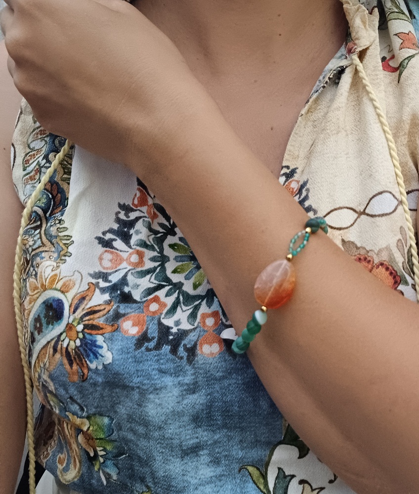 Χειροποίητο βραχιόλι με ημιπολύτιμους λίθους Aχάτη σε διάφορα χρώματα και σχήματα.