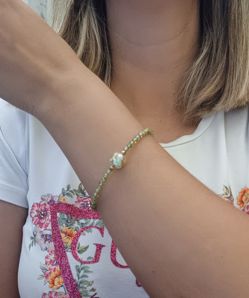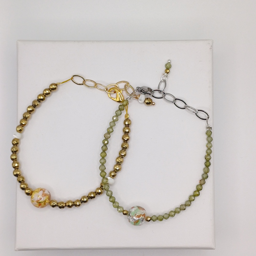 Βραχιόλι με πέρλα Murano και ημιπολύτιμους λίθους σε δυο διαφορετικά χρώματα: